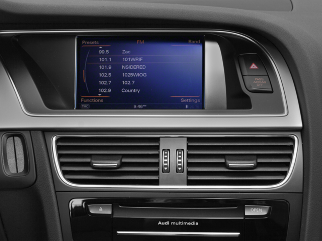 - Radio: Audi Concert System w/1CD Player -inc: MP3 capable, AM/FM radio, auxiliary input jack, SD card slot w/32GB capacity for MP3 files, speed-dependent volume control, Audi MMI radio plus system for controlling infotainment/climate/car setup w/6.5" color screen, Audi music interface w/iPod integration includes 1 cable for iPod connection, Audi 6-channel DSP extended premium sound system w/10 speakers including subwoofer, 180 watt sound system and SiriusXM satellite radio w/90-day trial subscription